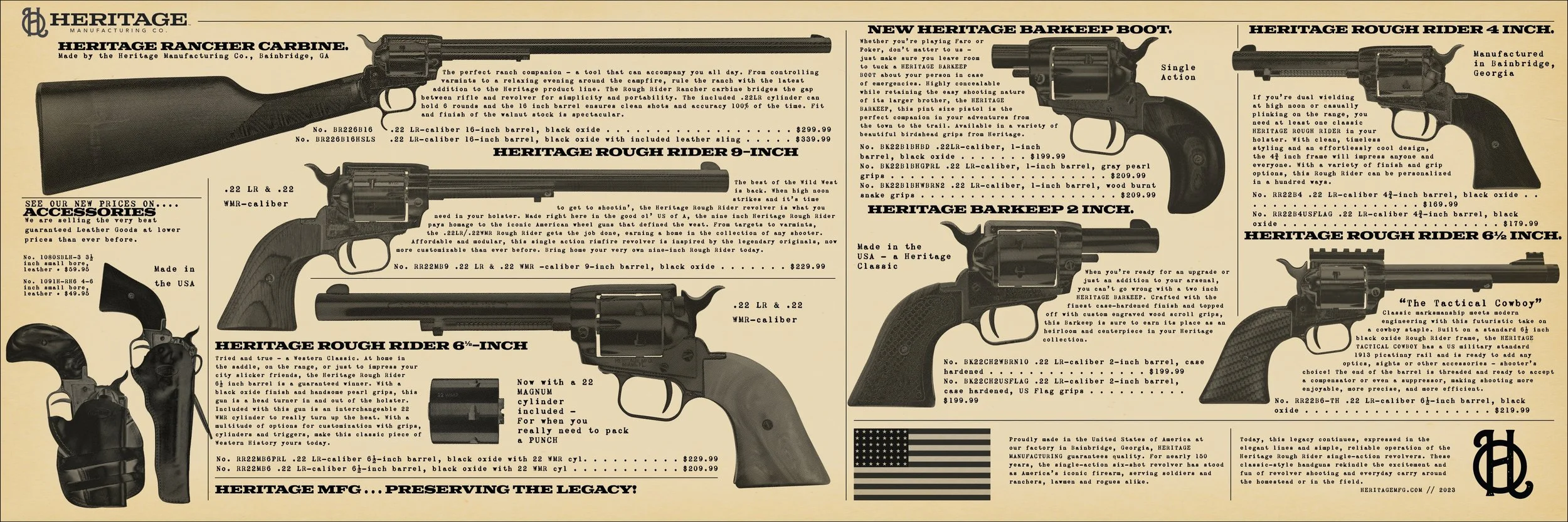 Heritage had long established itself as a major industry player in the cowboy gun world, but it was time for a rebrand and a visual refresh. We tapped into vintage art and firearm advertising to bring back the magic of maximalism in a time of minimalism.